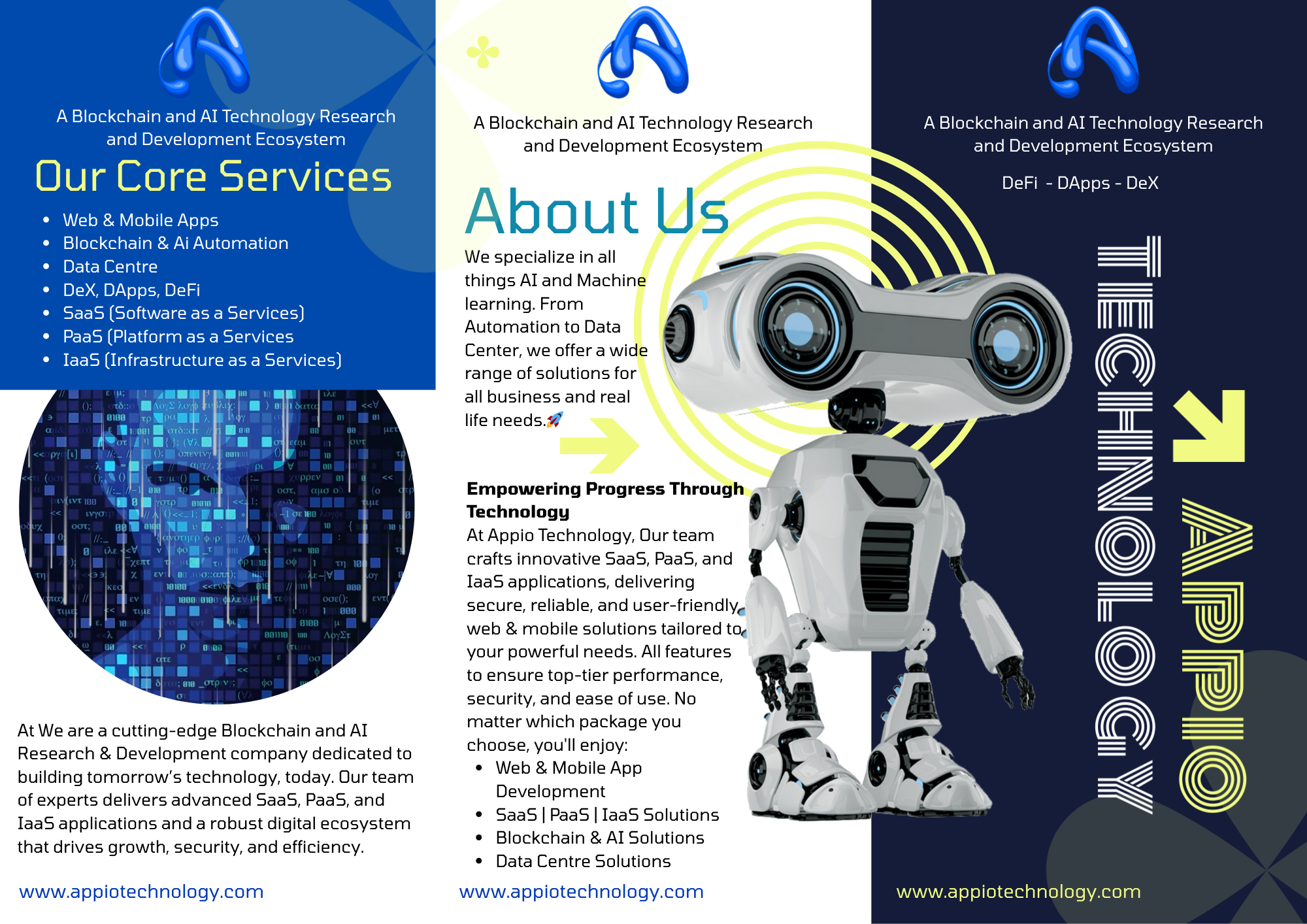 Power your Future with APPIO TECHNOLOGY. We provide innovative solutions to businesses looking to optimize their processes, build new revenue streams, and transform themselves to meet the demands of the future. where speed, security, and reliability come standard. Our cutting-edge SaaS, PaaS, IaaS and Blockchain solutions ensure seamless performance, 99.9% uptime, and 24/7 expert support.